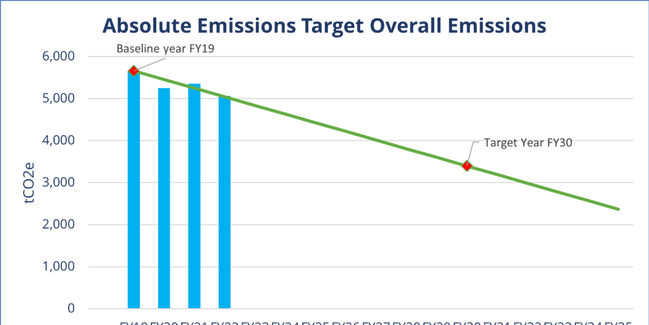 Project emissions reductions year on year against the emissions reduction target and your organisation’s actual emissions.