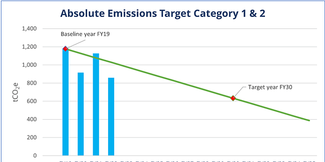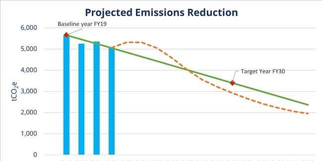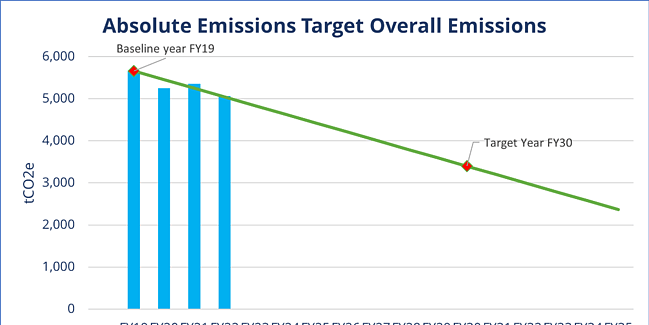 Project emissions reductions year on year against the emissions reduction target and your organisation’s actual emissions.